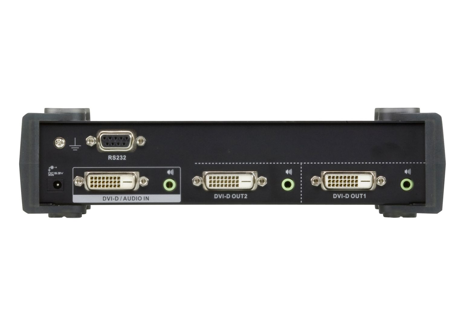 A hátlapon található beépített kétirányú RS-232 port lehetővé teszi az elosztó vezérlését vezérlőegységen, PC-n és/vagy otthoni automatizálási/házimozi szoftvercsomagon keresztül a teljes rendszerintegráció érdekében.