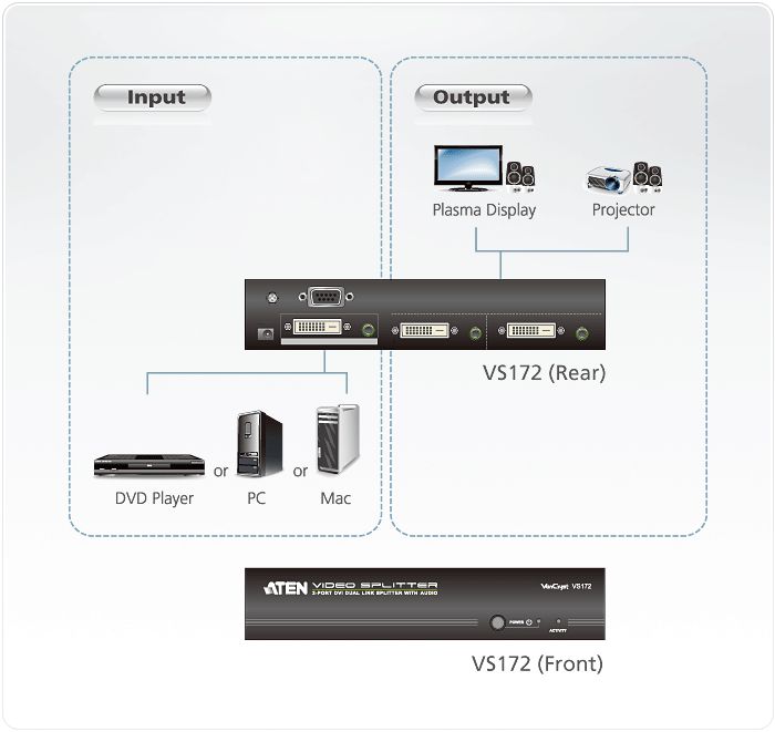 A VS172 könnyen kezelhető, és három szintre kaszkádosítható, akár 8 monitor kezelésére is alkalmas, ami ideális megoldássá teszi az olyan helyzetekben, mint például: