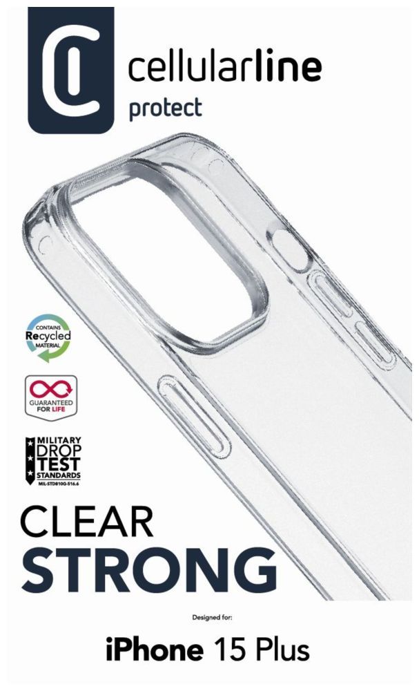 Cellularline Clear back cover with Cellularline Clear Duo protective frame for Apple iPhone 15 Plus