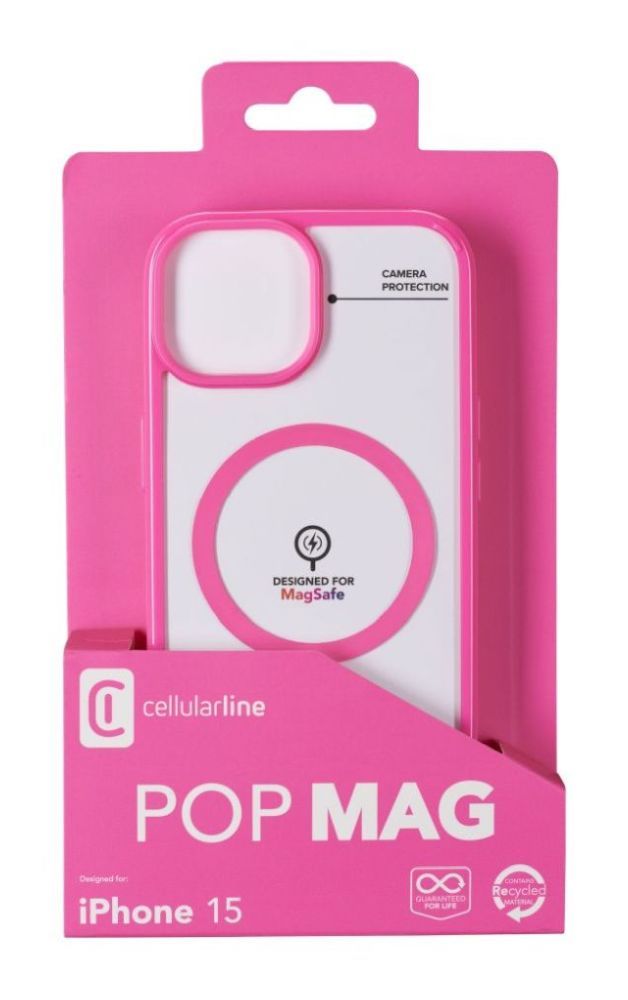 A Cellularline Pop Mag MagSafe támogatással ellátott tokja edzett polikarbonát és puha TPU kombinációjából készült.