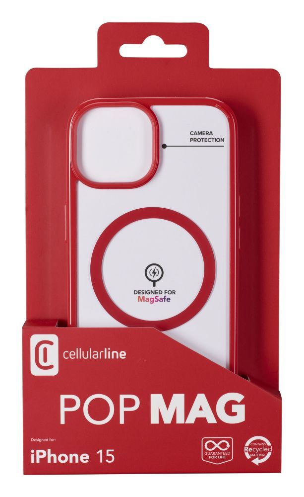 Cellularline Pop Mag back cover with Magsafe support for Apple iPhone 15, clear/red