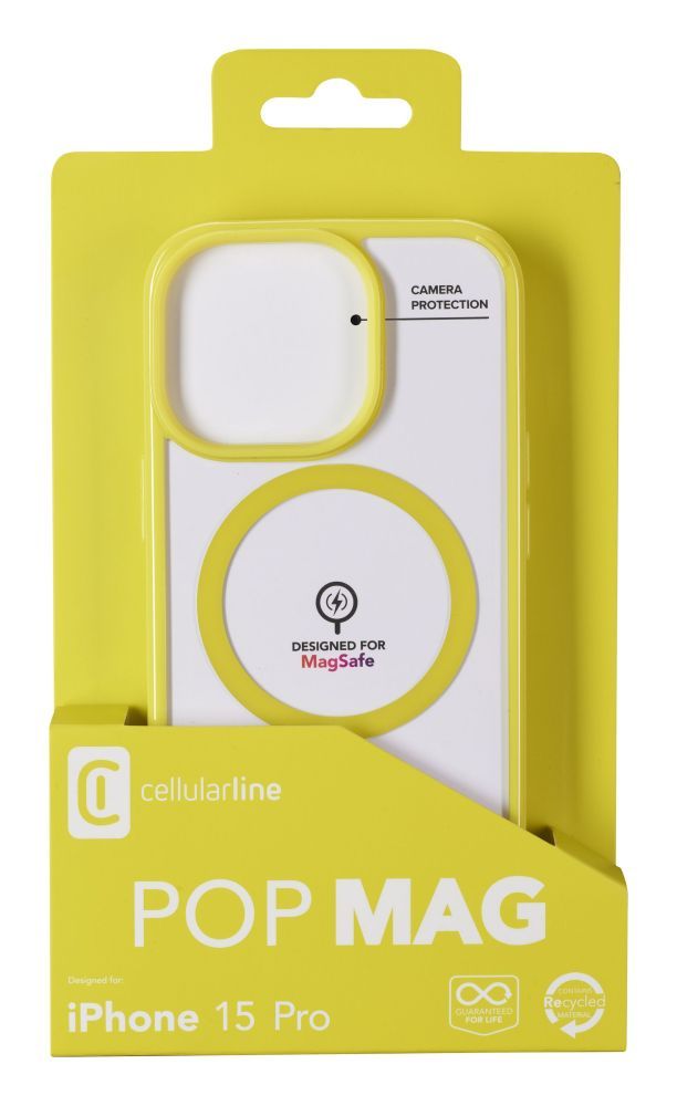 Cellularline Pop Mag Back Cover with Magsafe Support for Apple iPhone 15 Pro, Clear/Lime