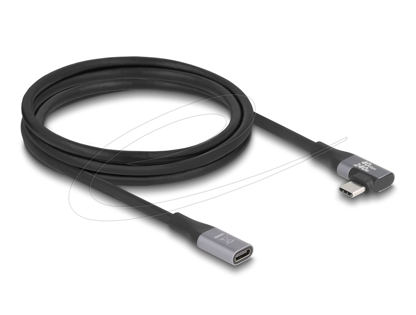 USB kábel, USB-C, USB-C, Ultra HD 8K, Male/Female, 2m, Black, Töltő és adatkábel