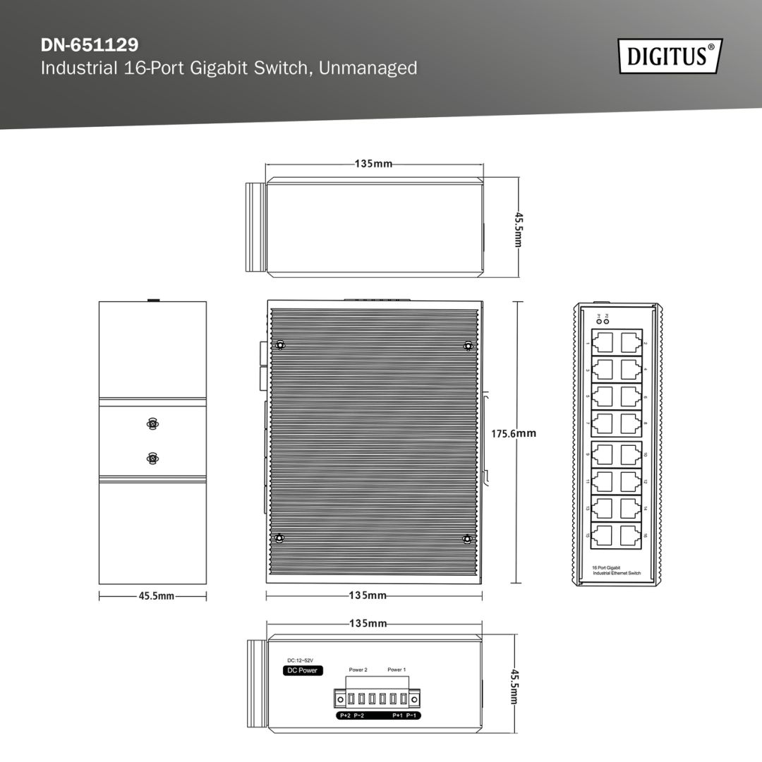 16xLAN port, LAN 10/100/1000 Mbps, 16xGigabit LAN, PoE osztály PoE, Teljesítmény 10W
