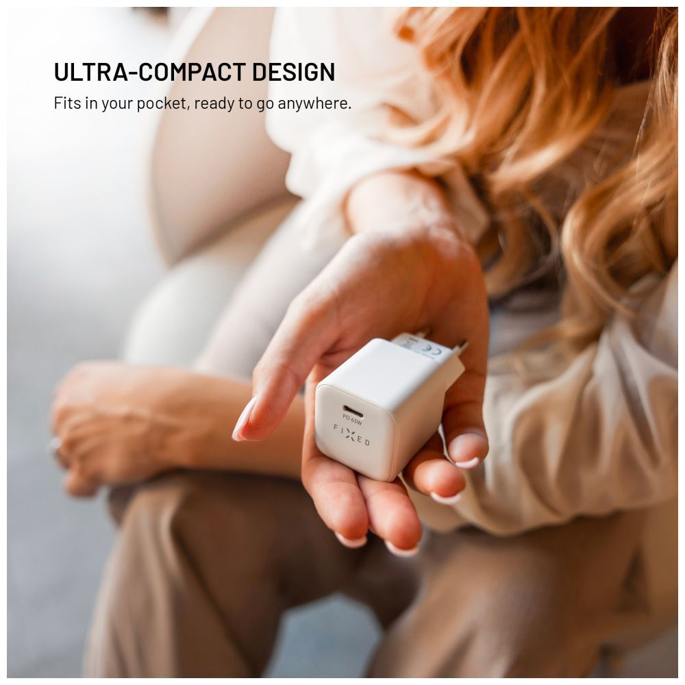A 65 W teljesítményű és az USB-C porton keresztül Power Delivery 3.0-t támogató FIXED miniatűr hálózati töltő gyorsan és megbízhatóan tölti fel az összes eszközét - a mobiltelefontól a MacBookig. Az adapter egyedülálló GaN technológiával van felszerelve, amely lehetővé teszi a töltő méretének csökkentését, miközben biztonságosan és hatékonyan fenntartja a nagy teljesítményt és a gyors töltést túlmelegedés nélkül. Rendkívül kompakt kialakításának köszönhetően a töltőt könnyedén csatlakoztathatja nehezen hozzáférhető helyeken, vagy elrejtheti zsebében vagy táskájában. Minimalista méretei ellenére teljes teljesítményt nyújt, és a túlmelegedés, túlfeszültség és rövidzárlat elleni beépített védelemnek köszönhetően biztonságos töltést biztosít. A környezetvédelem jegyében a töltő GRS tanúsítvánnyal rendelkező, újrahasznosított anyagokból készült, és a fenntarthatóság elveinek megfelelően tervezték. A FIXED töltőadapternek köszönhetően többé nem kell aggódnia amiatt, hogy kifogy az áram - akár otthon, akár az irodában, akár útközben.