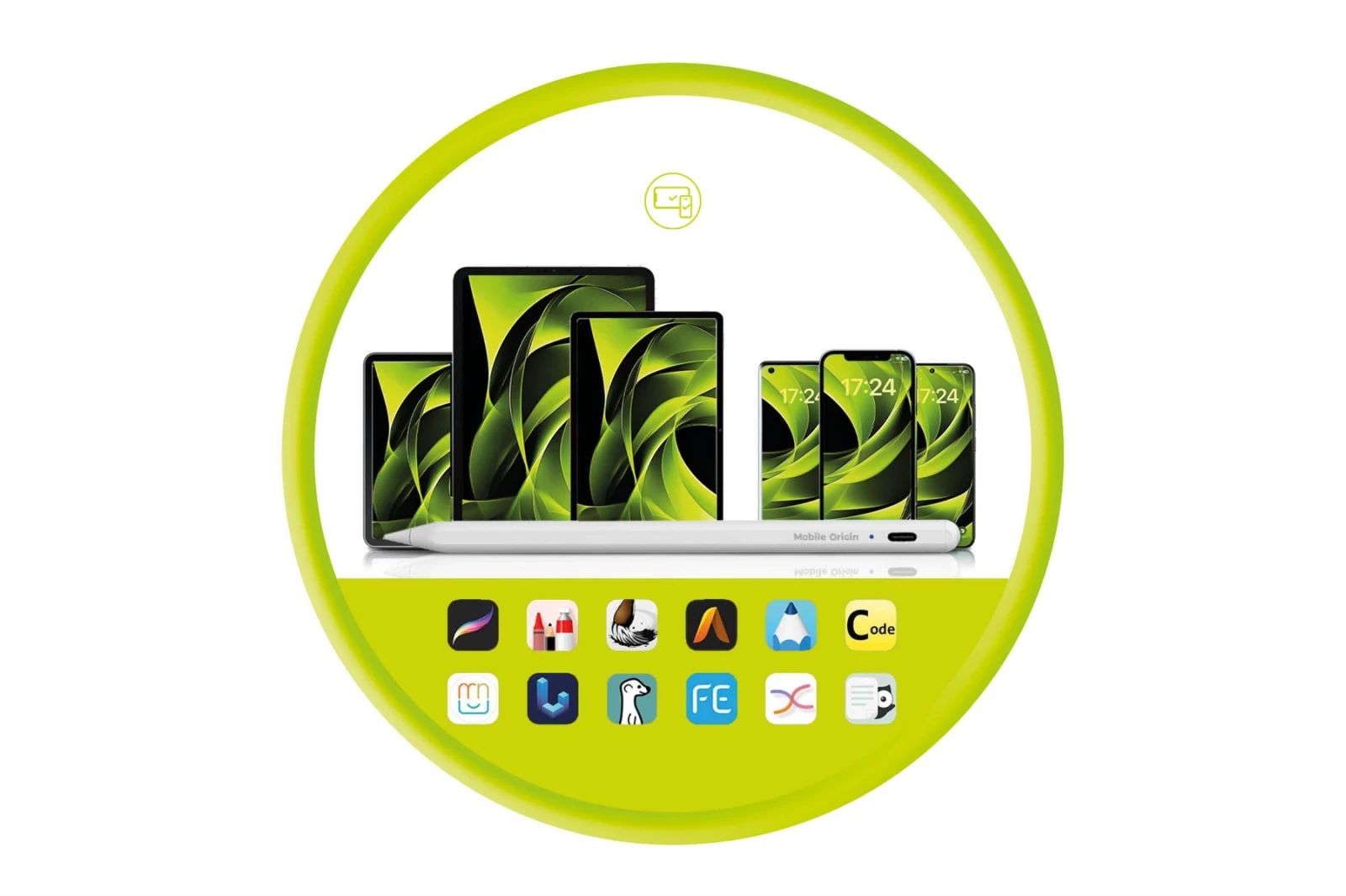 Az Origin PE1 Mobile Stylus a legtöbb érintőképernyős eszközzel (iOS, Android és Windows) kompatibilis, így tabletekkel és telefonokkal is használhatja írásra, rajzolásra és kényelmes vezérlésre.