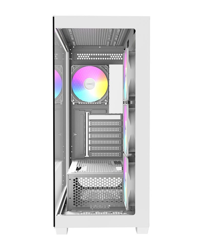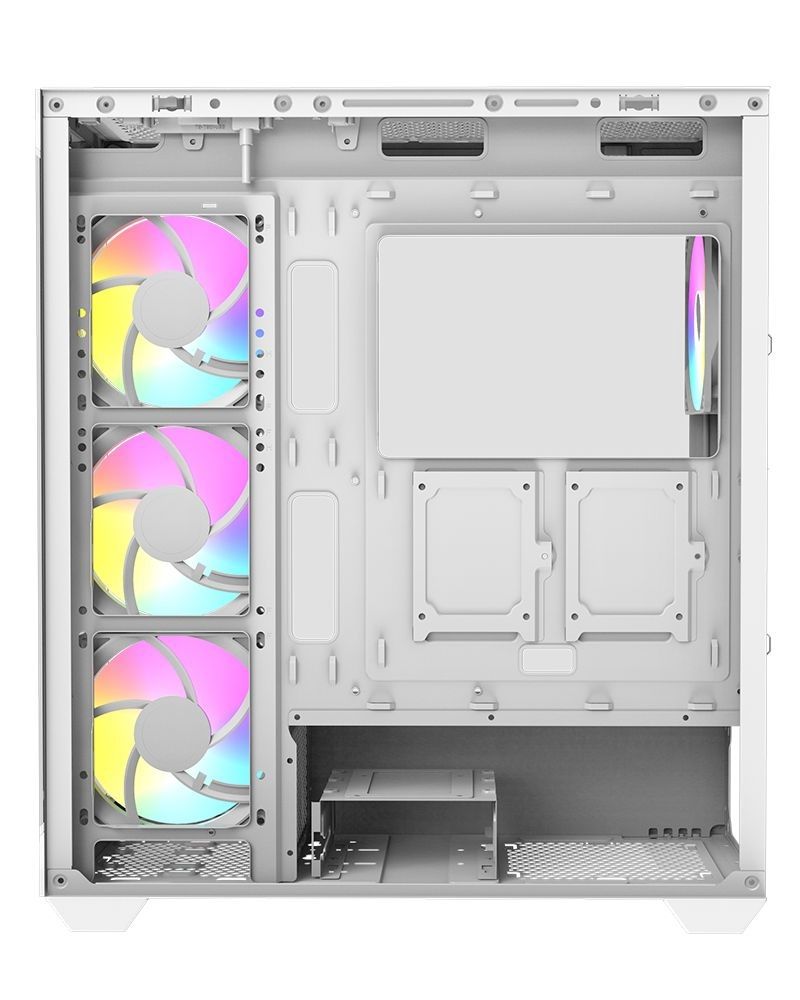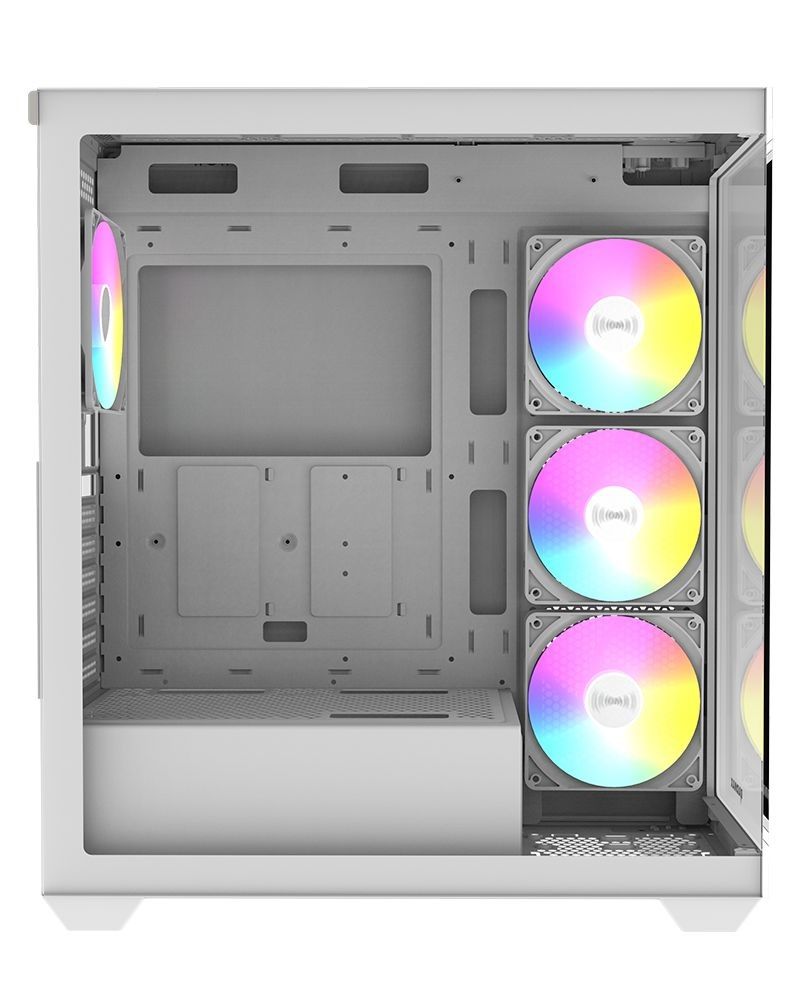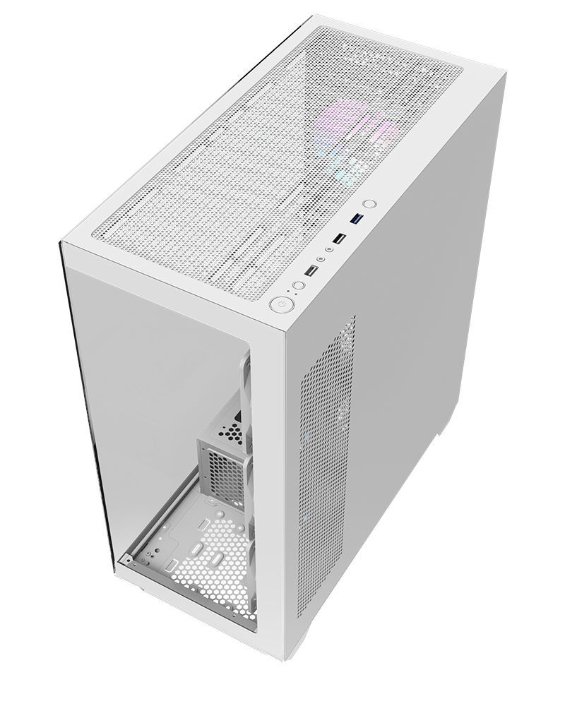 ATX, White, 2x3,5", 3x2,5", 2xUSB2.0, 1xUSB3.0, Audio, Táp nélkül, 485x212x429mm, Ventilátor:4x12cm, Tempered glass window, RGB, Gamer
