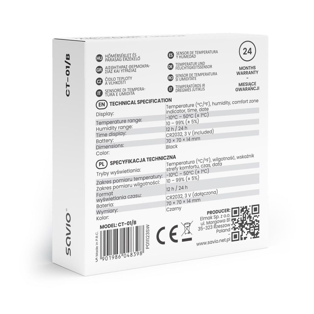 A Savio CT-01/B egy csúcstechnológiás és multifunkcionális elektronikus kiegészítő, amely otthon és a munkahelyen egyaránt jól használható. Elegáns esztétikája és kompakt mérete lehetővé teszi, hogy könnyedén illeszkedjen bármilyen belső térbe. Lehetővé teszi, hogy hatékonyan tervezze meg tevékenységeit és fenntartsa a megfelelő beltéri levegőminőséget. Ez a készülék naptár és időzítő funkciókkal is fel van szerelve.