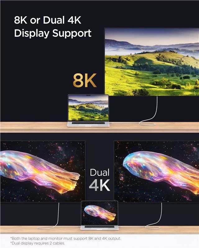 Akár 8K képfelbontás támogatása: egy kábel egy 8K monitor kezelésére alkalmas.