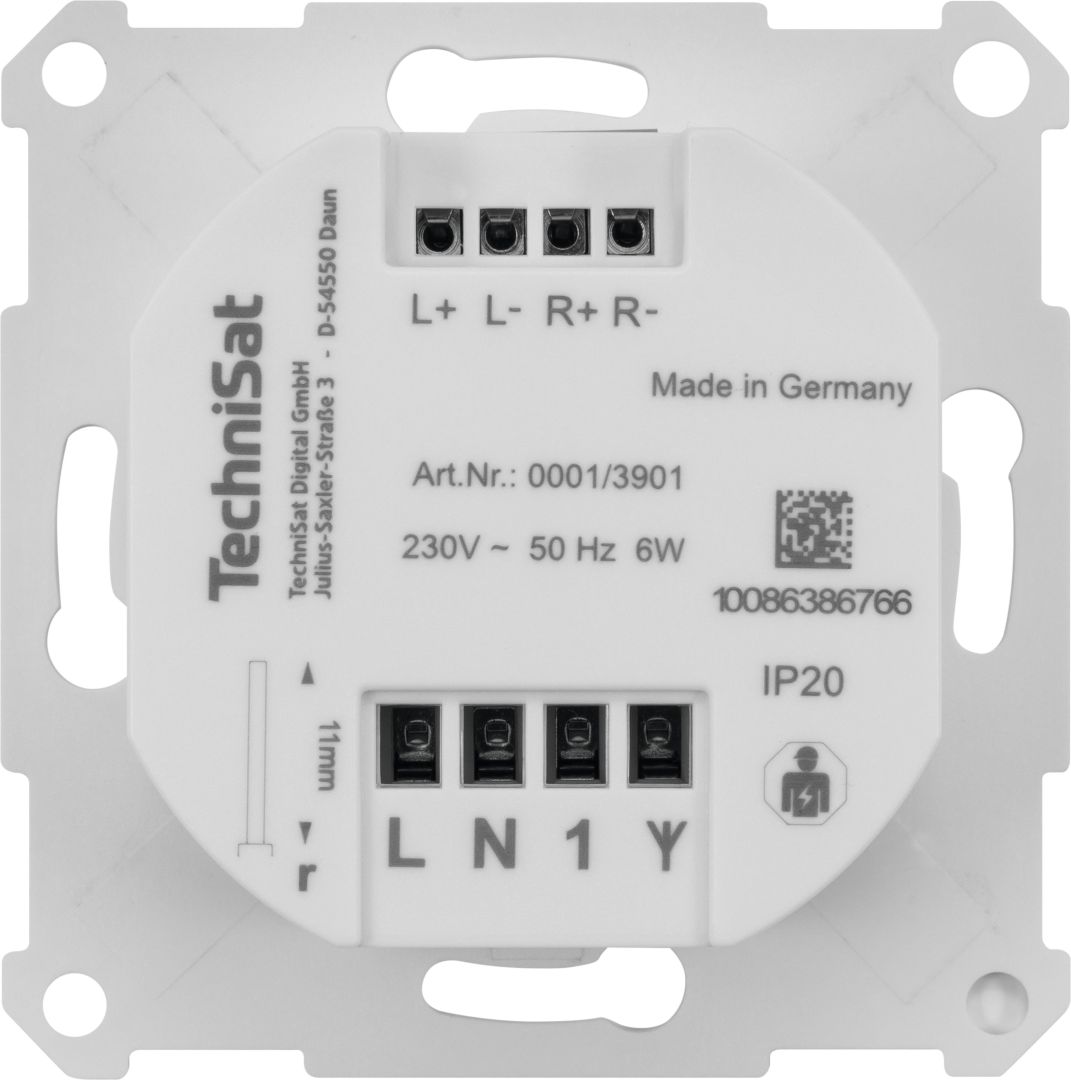 A TechniSat DIGITRADIO UP 55 egy kompakt, süllyesztett rádió, amely rugalmasan beépíthető, például dupla süllyesztett aljzatba. A készülék két betétből áll: egy süllyesztett rádió OLED kijelzővel és érintőképernyős kezelőpanellel, valamint egy süllyesztett hangszóró. Mindkét betét mérete 55 x 55 mm, így gyakorlatilag minden, a kereskedelemben kapható, neves kapcsolóprogram-gyártók által gyártott beépítőkerettel kombinálható. Kívánság szerint a rádiós részhez egy második hangszóró is csatlakoztatható. A rádió a DAB+ és az FM csatornákon keresztül fogadja az adásokat, a zenei streaminget pedig Bluetooth-on keresztül, így a hangszóró kiváló hangminőséget produkál. Ideális lejátszási listákhoz és okostelefonon keresztül történő zenelejátszáshoz. DAB+ és FM állomásmemóriákkal rendelkezik, amelyek mindegyike 20 állomás befogadására alkalmas. Az ébresztési funkcióval és alvásidőzítővel ellátott időkijelző a DIGITRADIO UP 55-öt helytakarékos rádiós ébresztőként is vonzóvá teszi. Ezt a készüléket kizárólag süllyesztett beépítésre szánjuk. A hálózati áramhoz való csatlakoztatást csak szakképzett villanyszerelők végezhetik. Felhívjuk figyelmét, hogy a készülék nem tartalmaz szerelőkeretet, ezért továbbra is a meglévő szerelőkeretet kell használnia.