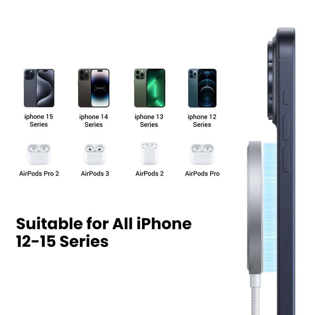 Wireless töltő, 5V, 3A, 15W, White