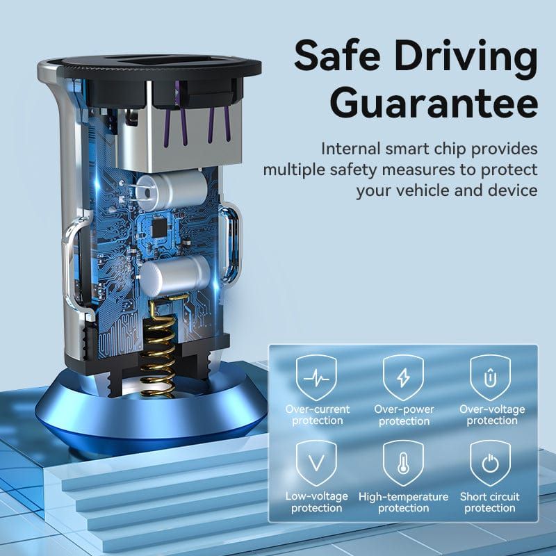 Többféle gyorstöltési protokoll Két port egyidejű 25W-os kimenettel Az USB-C port támogatja a PD30W Max 30W Max kimenet az USB-A porthoz, Vention 5A gyorstöltő kábellel, Jelentősen csökkenti a töltési időt Támogatja az egyidejű gyorstöltést a vezető- és a másodpilótaülésen Az intelligens belső intelligens chip több biztonsági intézkedést biztosít a jármű és a készülék védelme érdekében A korszerűsített alumíniumötvözet ház hatékonyan elvezeti a benne keletkező hőt Megerősített csúszásmentes klip a szoros csatlakozáshoz és a többféle útviszonyoknak való megfeleléshez Kék LED-fény a port kereséséhez sötét fényben Kompatibilis a mainstream szedánnal, SUV, teherautó és más, a piacon kapható autómodellekkel, széles 12V-24V feszültségtartományban Töltse telefonját, táblagépét, autórögzítőjét és más digitális eszközeit.