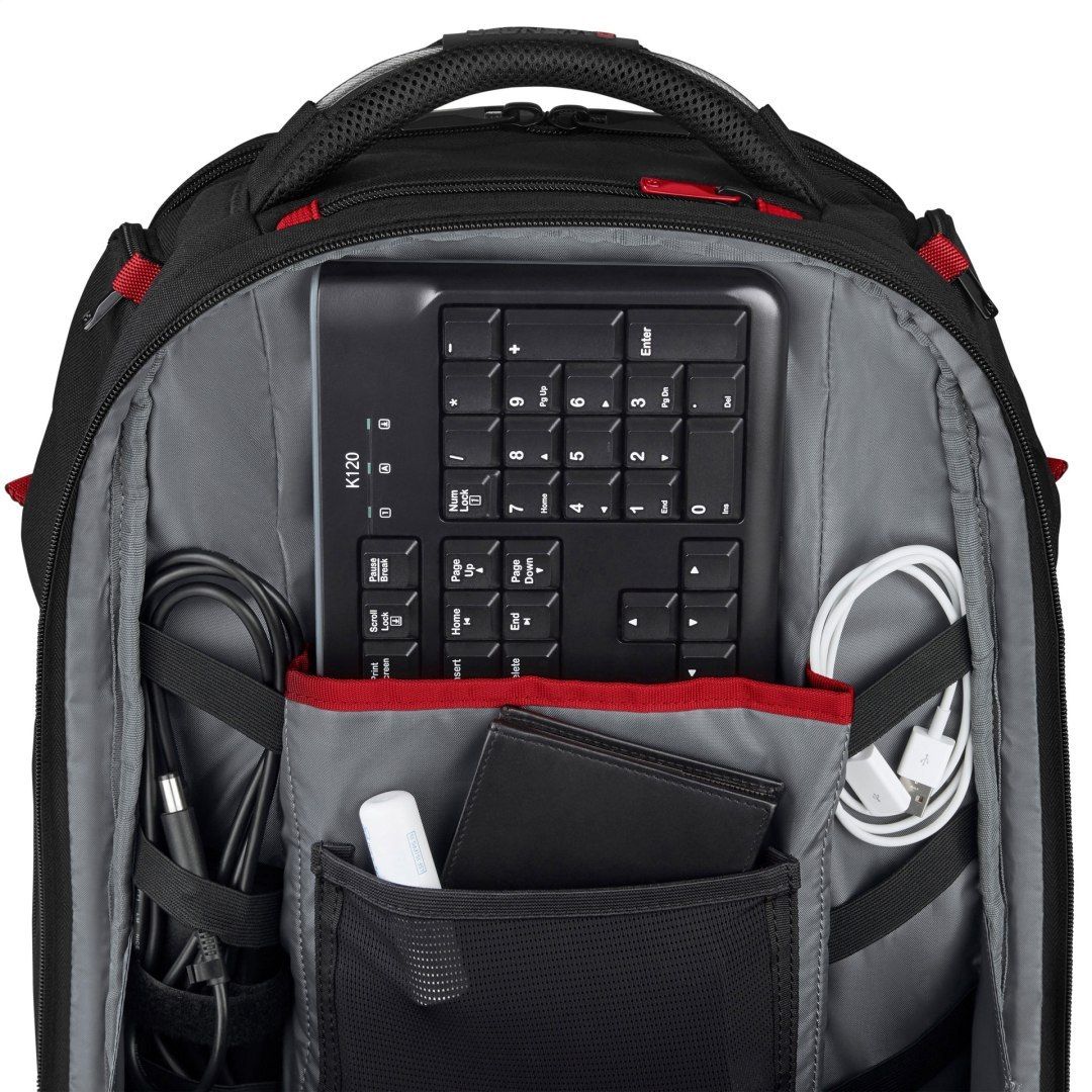 - A párnázott Triple Protect laptoprekesz a hálós oldalsó hűtőpanelekkel egy 17,3 hüvelykes